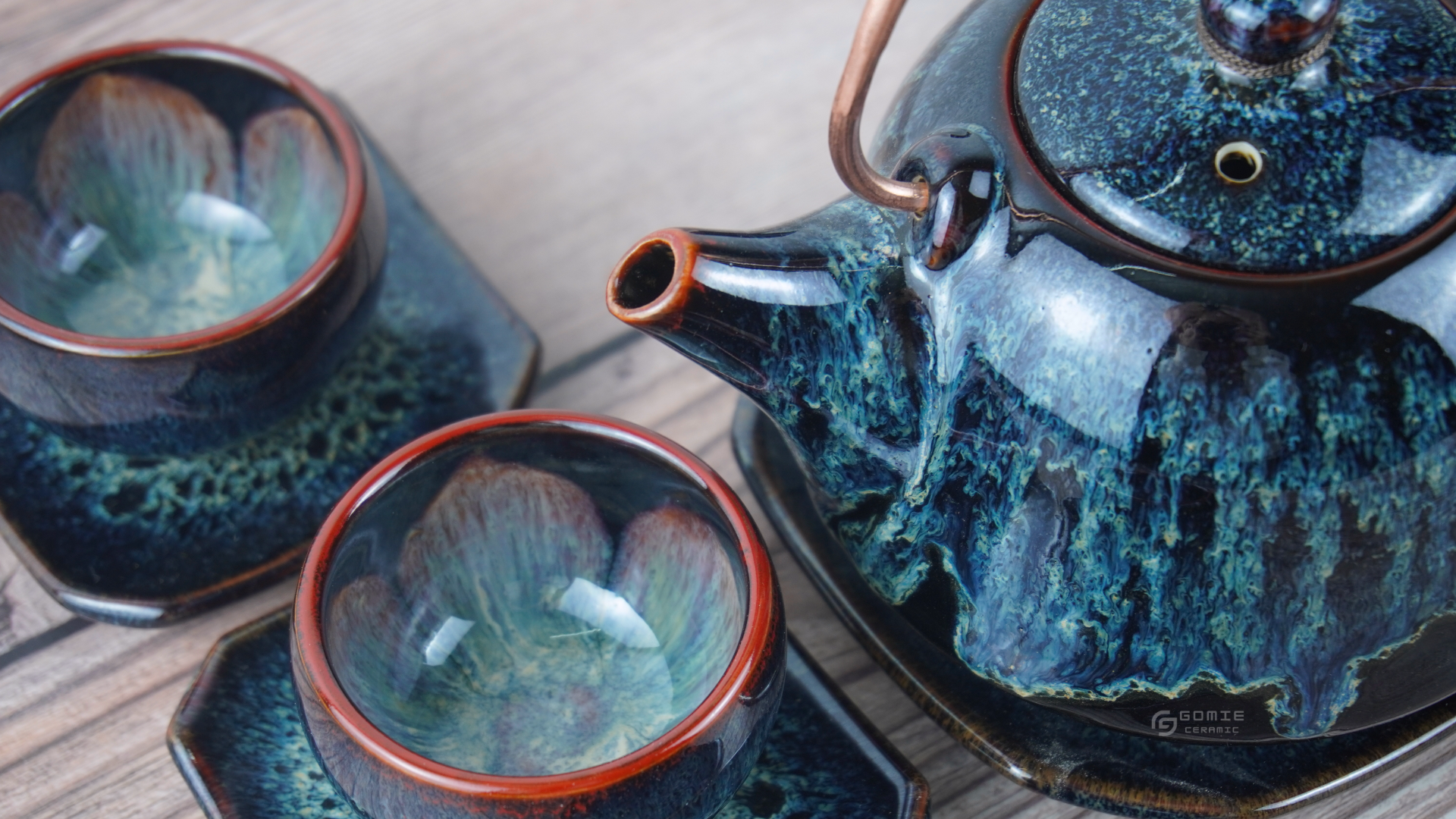 - Ấm chén men hỏa biến: Mỗi sản phẩm có vân màu riêng biệt, tạo nên sự khác biệt và đẳng cấp.
