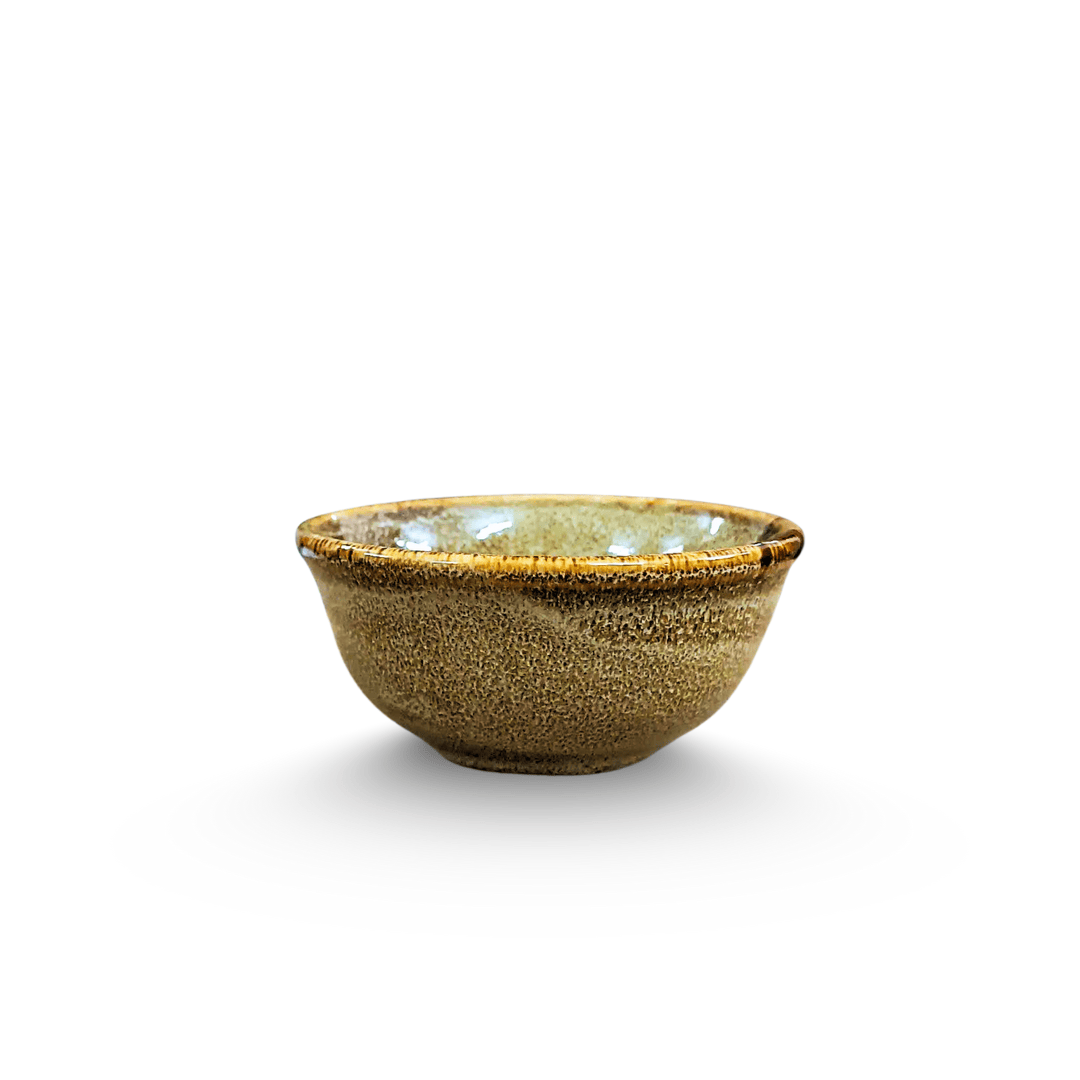 Bát Chấm Tròn Gấm Vàng thuộc bộ sưu tập gốm sứ hỏa biến Gomie Ceramic, là sự kết hợp giữa nghệ thuật chế tác thủ công và thiết kế ứng dụng. Mỗi chiếc bát chấm là một tác phẩm độc bản, mang vẻ đẹp quyền quý của men gấm vàng, với những đường vân men lan tỏa tựa như những sợi tơ vàng óng ả, tạo nên điểm nhấn tinh tế và sang trọng cho bàn ăn.