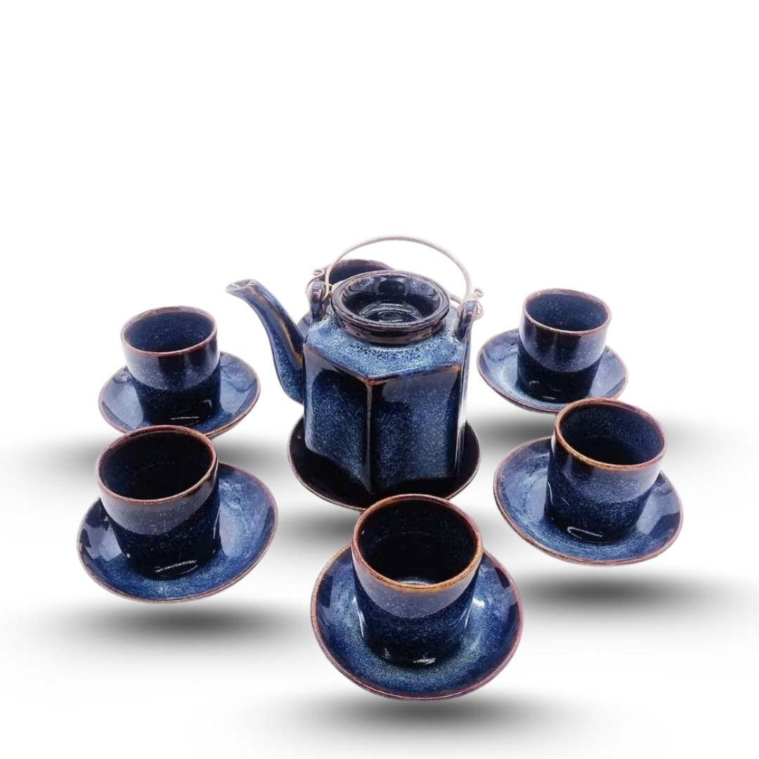 BỘ ẤM TRÀ LỤC GIÁC MEN XANH HỎA BIẾN ACTX-03 | GOMIE CERAMIC