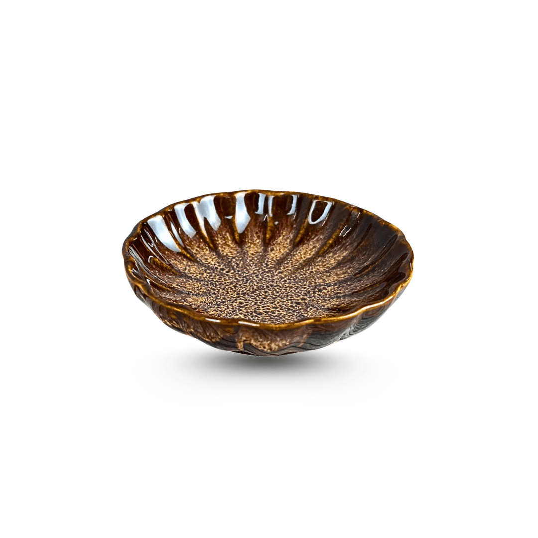 Tựa một đóa cúc họa mi nở trên nền đất ấm, Đĩa Muối Hoa Cúc Nâu Tuyết là một nét chấm phá đầy duyên dáng và bình yên. Phom dáng uốn lượn mềm mại ôm trọn những hạt muối, tiêu hay chút gia vị đặc biệt, biến chúng trở thành một phần của nghệ thuật bày trí trên bàn ăn.