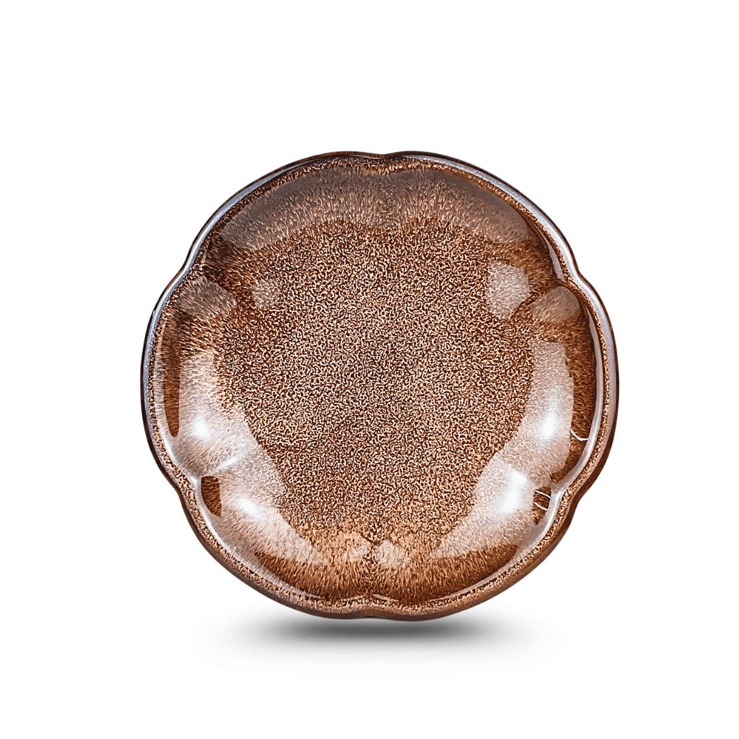 Nơi vẻ đẹp mộc mạc và sự duyên dáng giao hòa, Đĩa Viền Hoa Men Nâu Tuyết là một nét chấm phá đầy bình yên cho không gian ẩm thực. Đường viền uốn lượn mềm mại như những cánh hoa, kết hợp cùng sắc men nâu tuyết trầm ấm, biến mỗi món ăn trở thành một lời tự sự mộc mạc và chân thành.