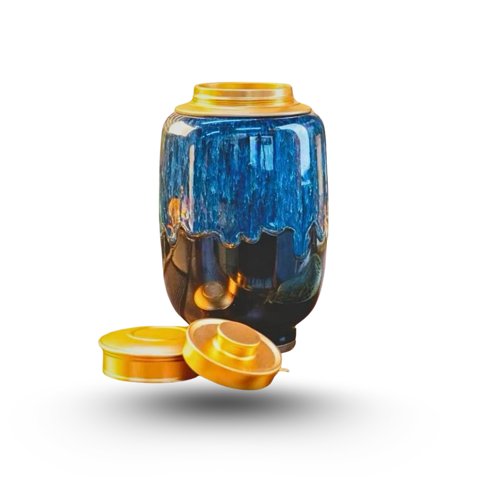 Hũ Đựng Trà Gomie Ceramic là sự kết hợp hoàn hảo giữa nghệ thuật gốm sứ Bát Tràng truyền thống và kỹ thuật Men Hỏa Biến cao cấp. Lớp men Sapphire được nung ở nhiệt độ tạo nên các vân men độc nhất vô nhị, mang đến vẻ ngoài sang trọng, tinh xảo, đồng thời giúp giữ hương trà tuyệt đối.