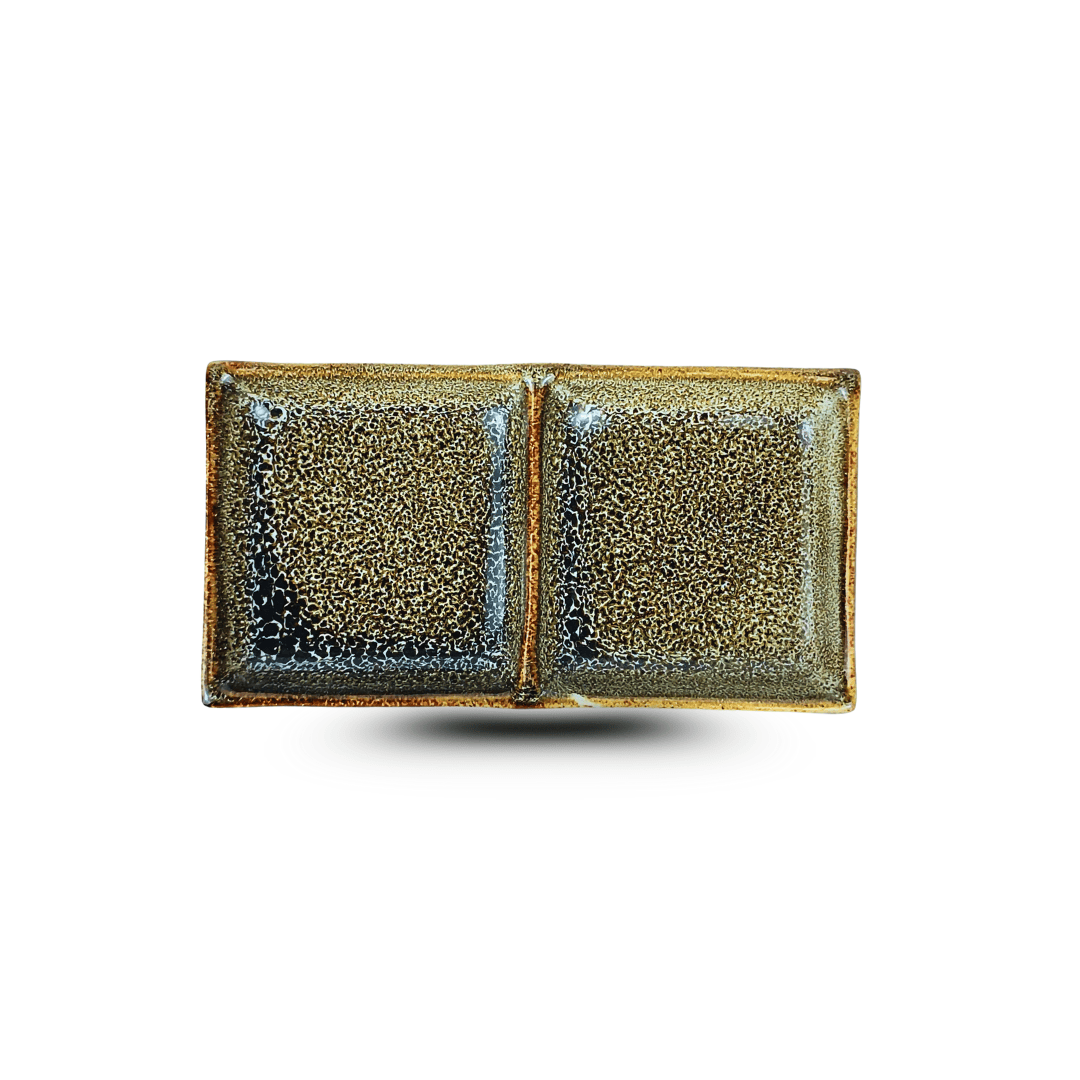 Tên sản phẩm: Khay đựng gia vị 2 ngăn men gấm vàng